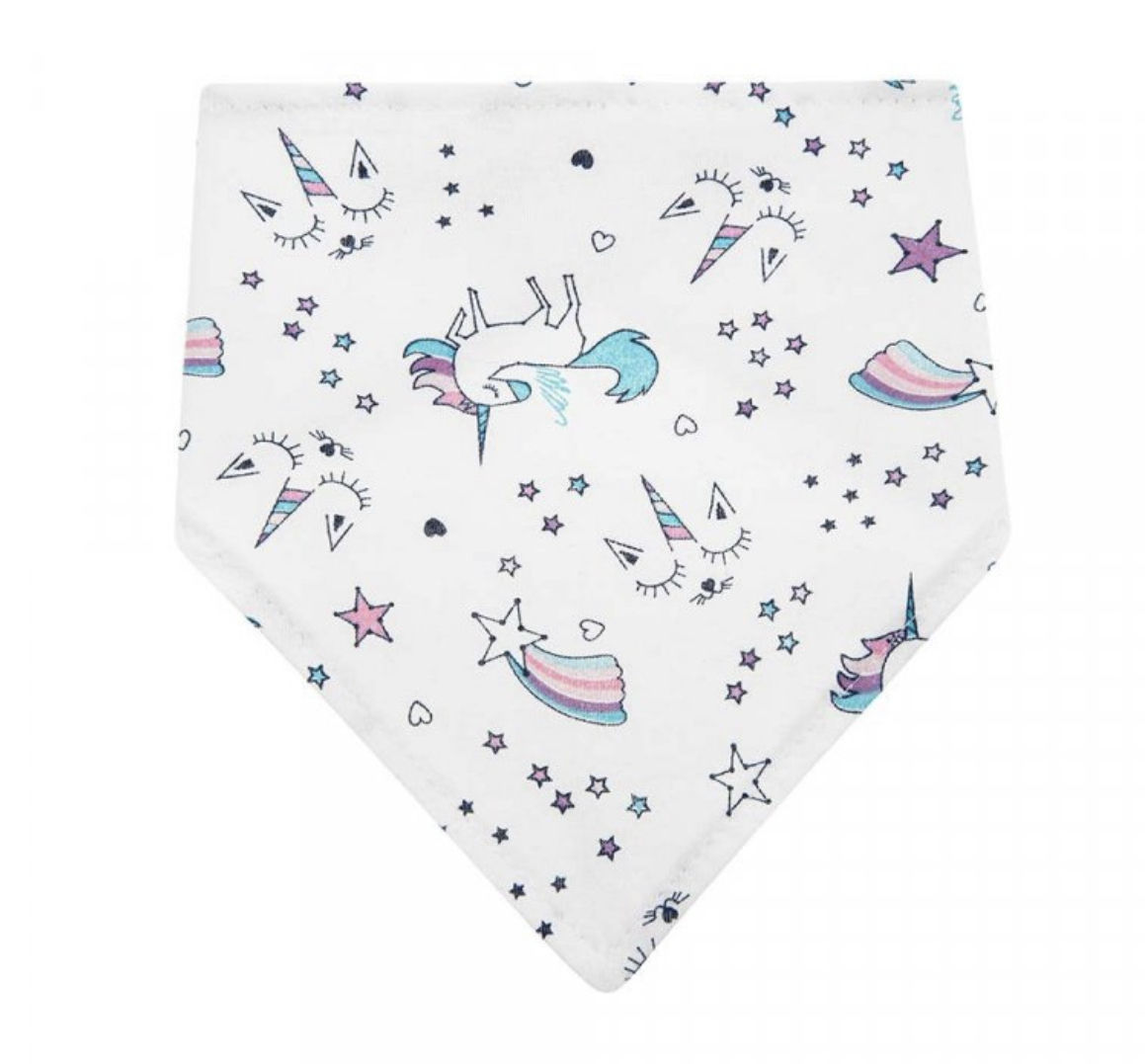 Nádherný dětský šátkový bryndáček s motivem jednorožců.