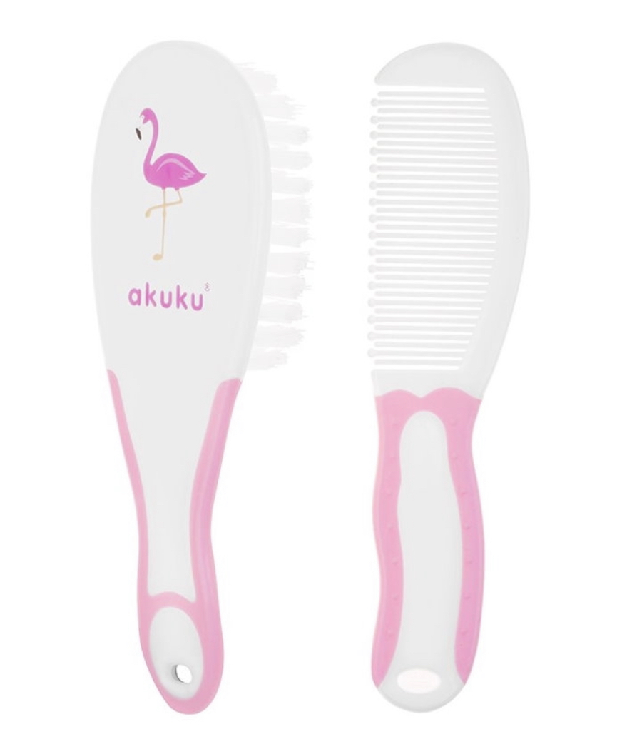Akuku Hřebínek s kartáčkem - bílo-růžový (plameňák)skladem 2 ks85 Kč/ ks70 Kč bez DPH