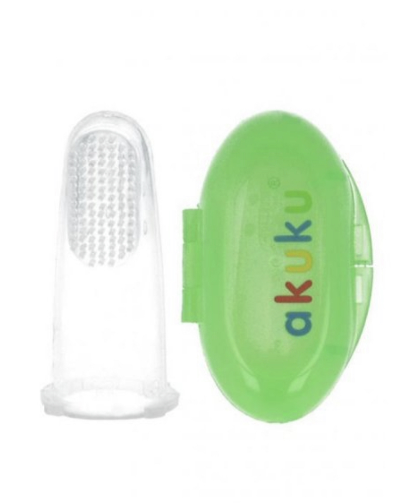 První zubní kartáček Akuku je určen pro děti od narození. Kartáček má praktické pouzdro. Je vyroben ze silikonu. Neobsahuje BPA.