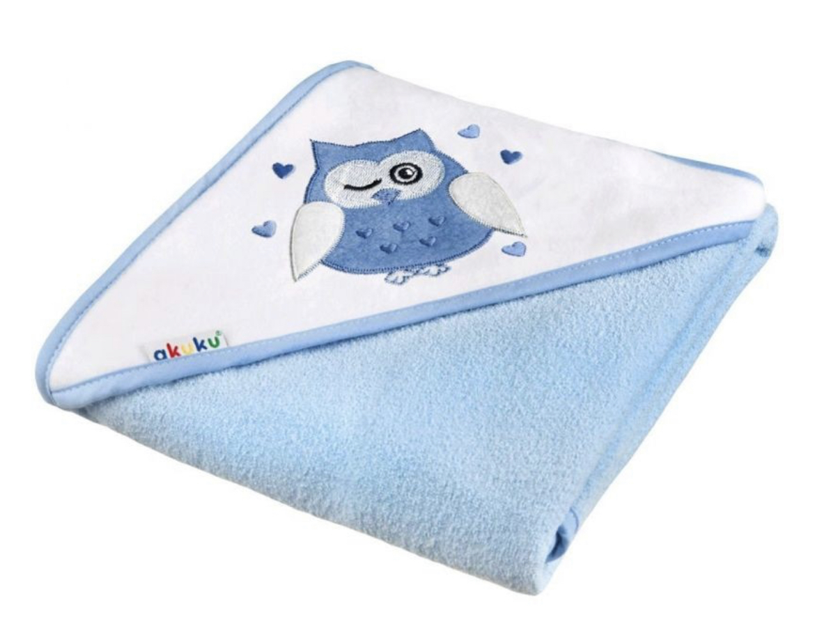 Akuku dětská osuška 80x80 modrá se sovouSkladem 2 ks189 Kč/ ks156 Kč bez DPH