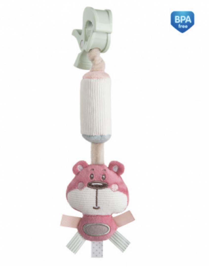 Plyšové chrastítko ve tvaru zvířátek. Chrastítko je možné pomocí klipu připevnit na kočárek, postýlku nebo autosedačku. Živé barvy zvířátek a zvuk zvonečku přitahují pozornost dítěte a podporují rozvoj jeho smyslů a motoriky.Různé materiály a druhy povrchů rozvíjí dětský hmat a citZvonění hračky a jejich různých částí rozvíjí dětskou pozornost Návod k použití: Udržujte v čistotě.