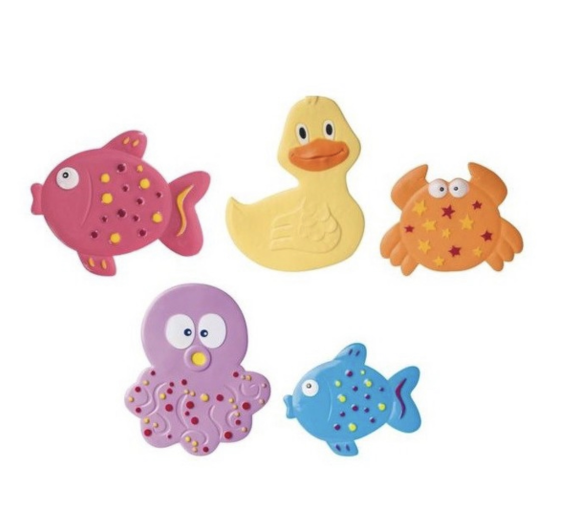 Sada protiskluzových mini podložek do vany ve tvaru mořských zvířátek chrání dítě před uklouznutím ve vaně. Snadno se připevňují pomocí přísavek. V balení 5 ks barevných zvířátek.