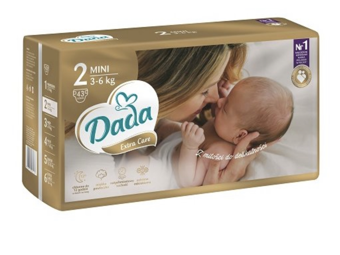 Dada Extra Care 2 mini, plenky vytvořené pro děti o hmotnosti mezi 3-6 kg, jsou perfektní a zaručující až 12 hodinové pohodlí - jak pro batolata, tak pro rodiče.Plenky pečují o kůži dítěte - měkký, dermatologicky testovaný materiál a s přidáním vitaminu E dodatečně chrání pokožku.Trojité, široké suché zipy se snadno upevňují.Prodává se v baleních po 43 kusů.