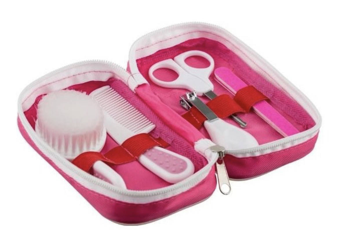 Dětská sada na manikúru Akuku, která umožňuje bezpečnou péči o dětské nehtíky. Sada obsahuje nůžky, kartáček a hřeben na vlasy, kleštičky a čtyři pilníky na nehty. Pilník vyhladí případné nerovnosti a zabrání se případnému poškrábání. Zaoblené tvary nůžek snižují riziko poranění dítěte a kleštičky nehty zkrátí. Celá manikúra je v krásném textilním pouzdře. Vhodné pro děti od narození.