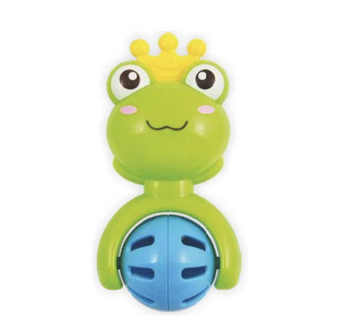 Dětské chrastítko Baby Mix. Chrastítko je ve tvaru žabičky. Na žabičce je uchycena otáčející se kulička s malými kuličkami. Chrastítko je určeno dětem od narození. Výška hračky je cca 13 cm. Materiál: plast.