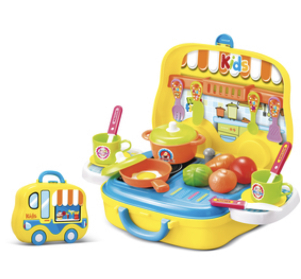 Super přenosná kuchyňka v kufříku. Ideální na cesty malého pokojíku nebo plastového domečku. V kufříku naleznete 25 kusů příslušenství, bez kterého se neobejde žádný malý kuchař.