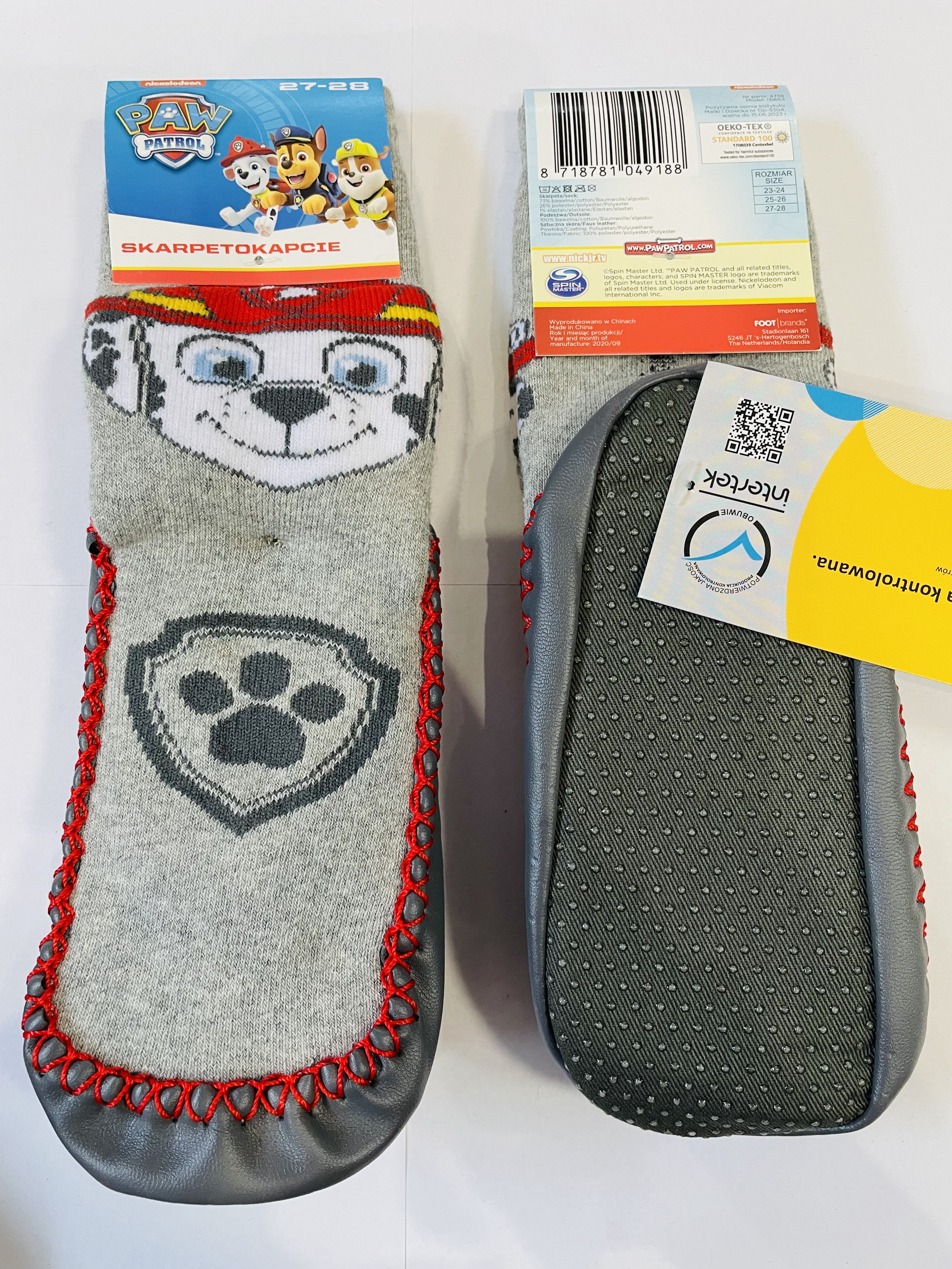 Jsou krásně hřejivé, s koženkovou podrážkou s měkkou výplní. ORIENTAČNÍ MÍRY VNITŘNÍ STÉLKY: vel.27/28 = cca 16,5cm. Výrobek s certifikátem OEKO-TEX standard 100. MATERIÁL: ponožka 80% bavlna, 15% polyester, 4% polyamid, 1% elastan podrážka 100% polyuretan (koženka) výplň podrážky: 100% polyeste